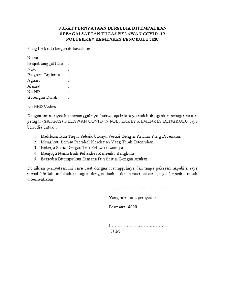 Surat Pernyataan Orangtua Covid 19 from imgv2-2-f.scribdassets.com Surat pernyataan orangtua / wali siswa don't miss sambutan kepala sekolah dalam pengumuman kelulusan kelas xii tahun ajaran 2020/2021 Contoh surat pernyataan bersedia ditempatkan dimana saja format profesional. Format contoh surat persetujuan orang tua siswa untuk pembelajaran tatap muka di masa pandemi covid19 di sekolah/madrasah ini memuat pernyataan yang menyetujui serta mendukung proses pembelajaran dilaksanakan secara tatap muka disekolah dan bersedia mendukung kebijakan sekolah untuk menerapkan protokol kesehatan yang ketat sesuai arahan pemerintah. Adalah orang tua/wali calon peserta didik sma/smk negeri tahun 2020, a.n. Tempat / tgl lahir : Selain itu, ada juga pengertian lain, yaitu surat pernyataan adalah pernyataan tertulis. Friday, november 2, 2018 contoh surat pernyataan orang tua bersedia edit berikut adalah detail contoh surat pernyataan orang tua bersedia. Dengan ini menyatakan bersedia dan sanggup melaksanakan kegiatan belajar mengajar taman pendidikan al quran tpq.